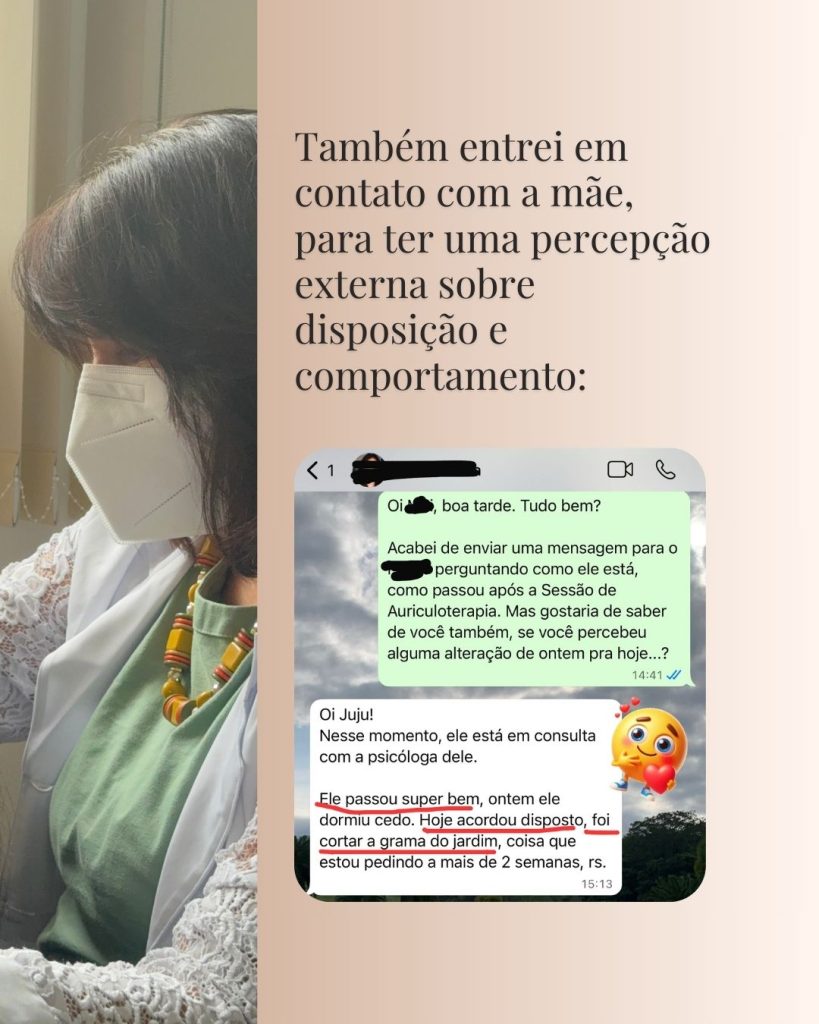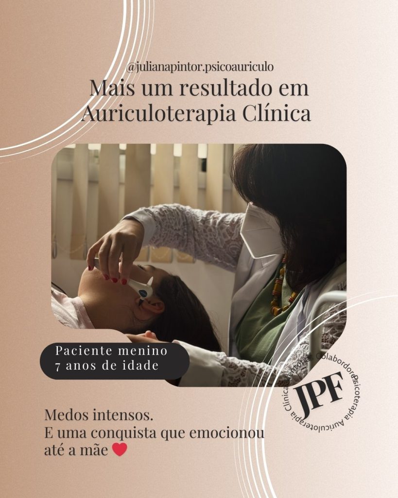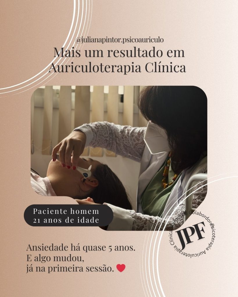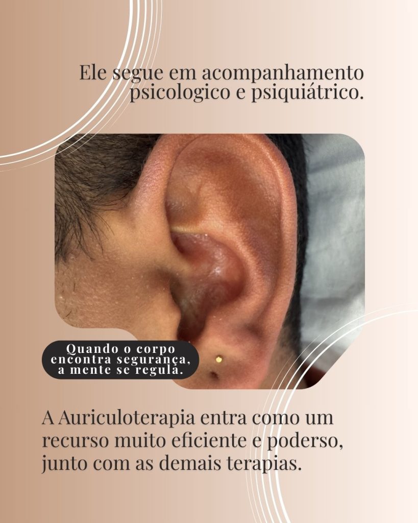Como recurso complementar, utilizo a Auriculoterapia Clínica Francesa, auxiliando no manejo de dores musculoesqueléticas e de manifestações emocionais como ansiedade e estados depressivos, compreendendo o sujeito de forma integrada.